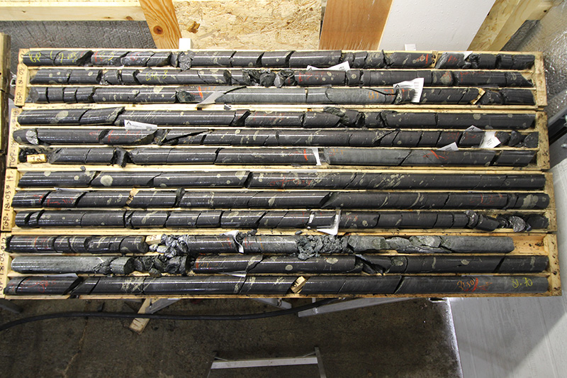 The highlight of the drill program was a graphite intersection consisting of 9.65 % Cg (carbon as graphite) over an intersection length of 42 metres which included a high-grade section of 8.80 metres at 21.62% Cg (see photo of drill core below).